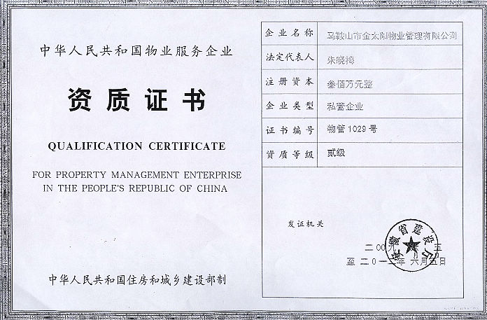 熱烈慶祝我公司順利取得物業(yè)管理二級(jí)資質(zhì)