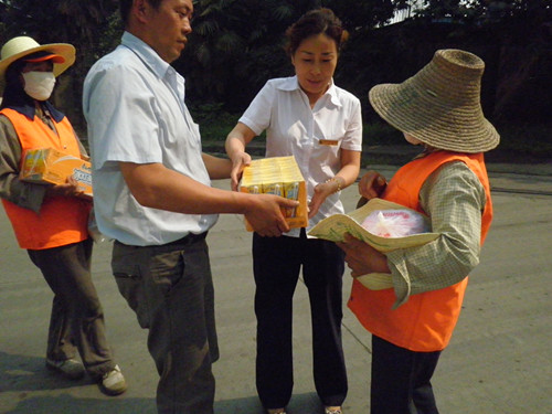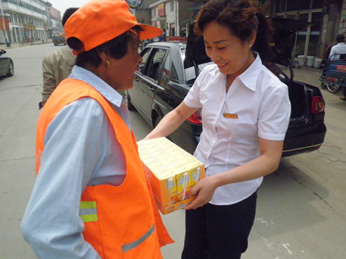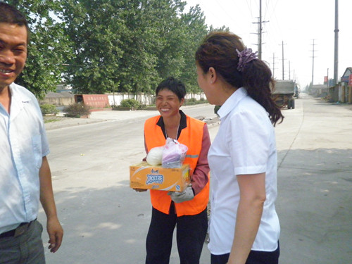 工會(huì)主席在慰問(wèn)金太陽(yáng)博望分公司道路保潔員