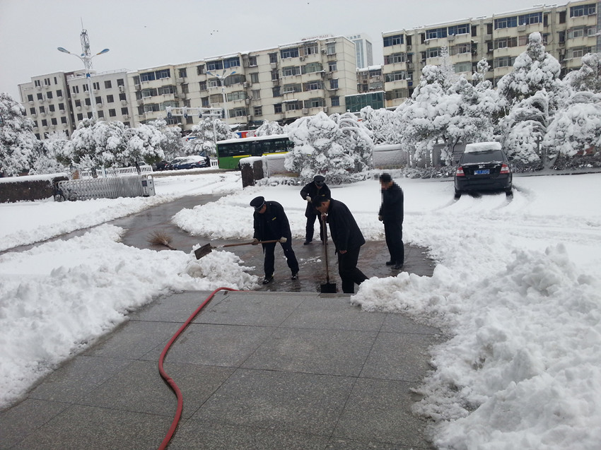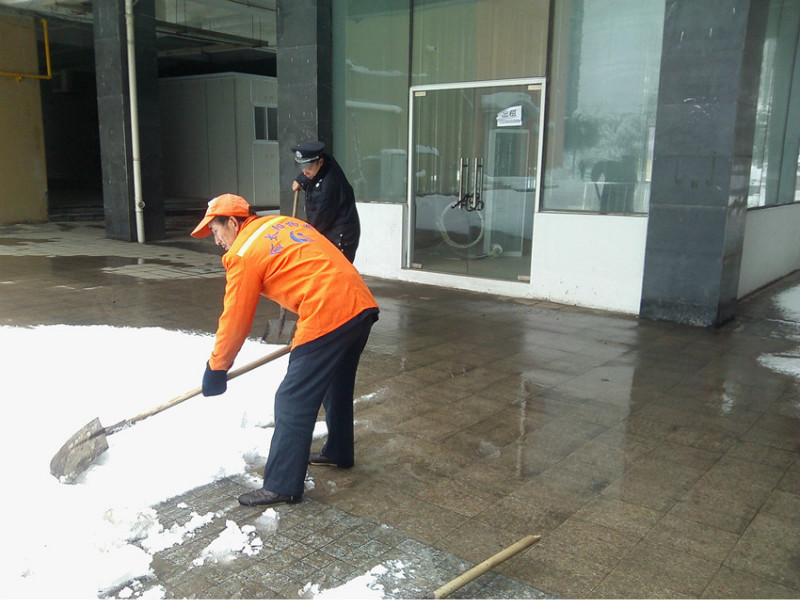 從2月18日晚開始,我市出現(xiàn)降雪、降溫、冰凍天氣,路面積雪給市民安全出行和正常的生產(chǎn)生活帶來了極大不便。為此、金太陽物業(yè)公司緊急下達通知,組織各管理處人員迅速行動,采取有效措施,清掃積雪,確保過往行人及車輛安全。