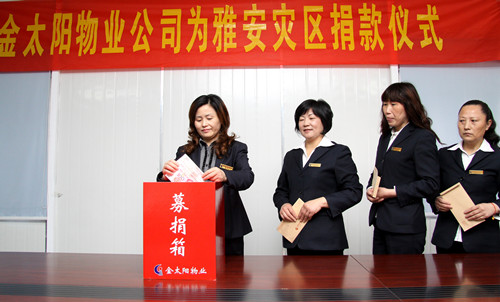 金太陽物業(yè)全體員工為雅安災區(qū)捐款儀式