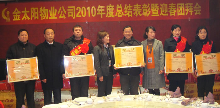 金虎辭舊歲,玉兔迎新春,金太陽物業(yè)公司于2011年1月23日下午在夢都臨湖隆重舉行2010年度總結(jié)表彰暨迎春團拜會。會議由工會主席朱曉軍同志主持,主要分…
